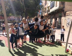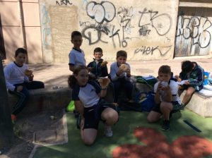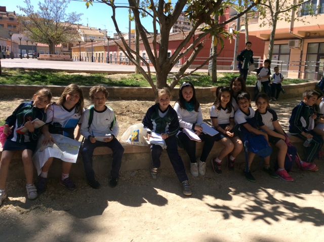 Preparados con nuestro cuaderno de campo y nuestro plano, realizamos un recorrido por el entorno próximo al Colegio, fuimos tomando nota de las calles por las que pasábamos, apuntamos los lugares de interés que encontramos en la ruta, tuvimos encuentros sorprendentes (un señor paseaba con un loro en su hombro), jugamos, nos comimos la mona…