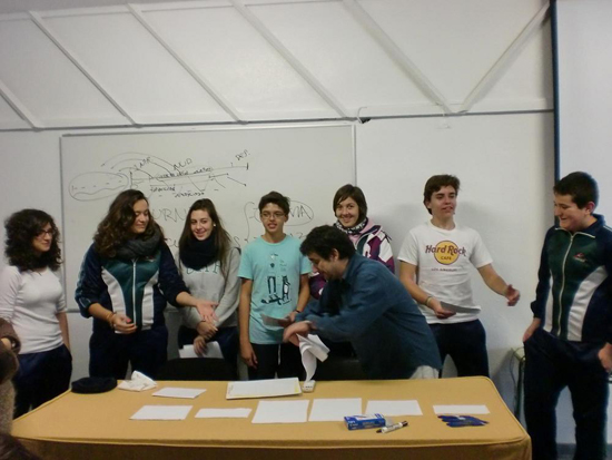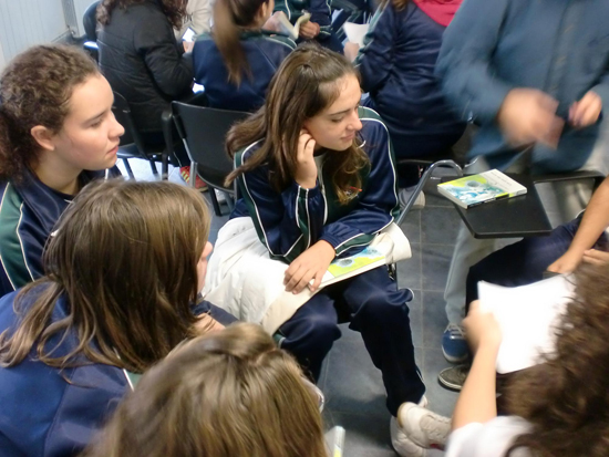 Para finalizar, hemos participado en un concurso: divididos en grupos y nombrando a un capitán/a, hemos tratado de dar solución a las pruebas que nos ha hecho, contando, si lo necesitábamos, con el apoyo del libro leído. Había una prueba particularmente difícil, un laberinto; un grupo lo ha sacado porque les ha dado una pista. Cada capitán se acercaba a dar las respuestas y recogía más pruebas, hasta que ha acabado el tiempo. La pena es que no había premio para el grupo ganador. A ver si nuestra profesora toma nota y nos pone un positivo.