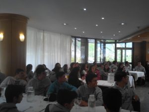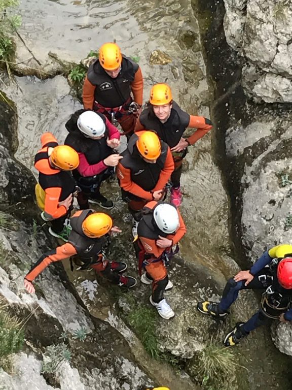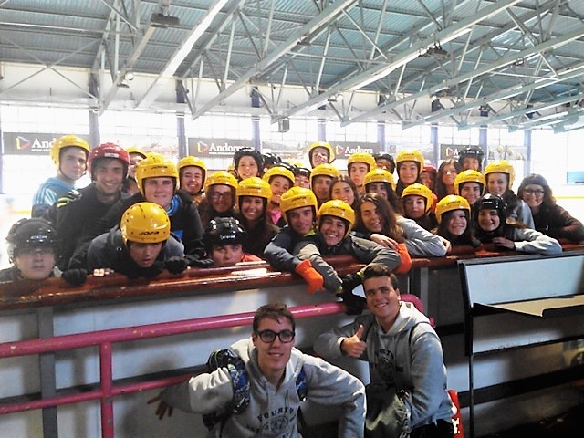 Al día siguiente teníamos un día intenso; por la mañana empezamos a hacer barranquismo entre montañas y ríos de agua gélida. Algunos no dejamos de tiritar durante todo el recorrido, aunque al final entramos en calor cuando tuvimos que subir un gran tramo de montaña casi vertical. La mayoría demostramos que somos intrépidos, pues había zonas que rapelar bastante altas. Después de comer, llegamos tan tarde a patinar que no nos dio tiempo a entrar al Palacio de Hielo. Había que pensar entonces qué hacer con esa actividad, en qué momento podríamos realizarla, cuando nos sorprendieron algunos copos de nieve. Habían caído las temperaturas bruscamente a lo largo de la tarde. Regresamos al hotel y algunos dieron un paseo por la ciudad hasta la hora de la cena.