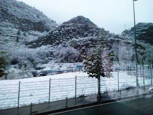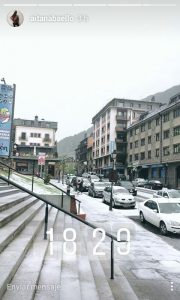 La mañana del jueves amaneció nevada, con temperaturas bajo cero nos tocaba hacer rafting. ¡Qué frío! El agua además estaba a 2ºC ¿Lo intentábamos? Muchos alumnos empezaron a decir que no les apetecía congelarse, que iban a ir a mirar si alguno lo hacía; así pues, si casi nadie iba a hacer la actividad y ante el peligro de que alguno cayera al río, los profesores decidimos suspenderla y salir hacia el Palau de Gel a patinar. ¡Qué soltura tienen algunos! Parecían profesionales, aunque otros cayeron varias veces haciéndose contusiones sin gran importancia. No dejó de nevar hasta después de comer, momento en el que fuimos a hacer las actividades de senderismo y ruta a caballo. Entre rayos de sol y copos de nieve mezclados con el viento pasamos la fría tarde. Al regresar al hotel nos esperaba la piscina con agua calentita ¡Qué bien! Cenando conocimos a los alumnos de otros institutos, de Valencia y Tenerife. Durante un rato, mientras unos entablaban conversaciones con ellos, otros decidimos dar un paseo nocturno recorriendo las frías calles de Andorra, muy, muy frías. De vez en cuando el viento traía pequeños copos de nieve que rozaban nuestras mejillas mientras observábamos encantados las luces y adornos de algunos edificios propios de Navidad. ¡Qué bonito, un paisaje típico de diciembre a finales de abril!