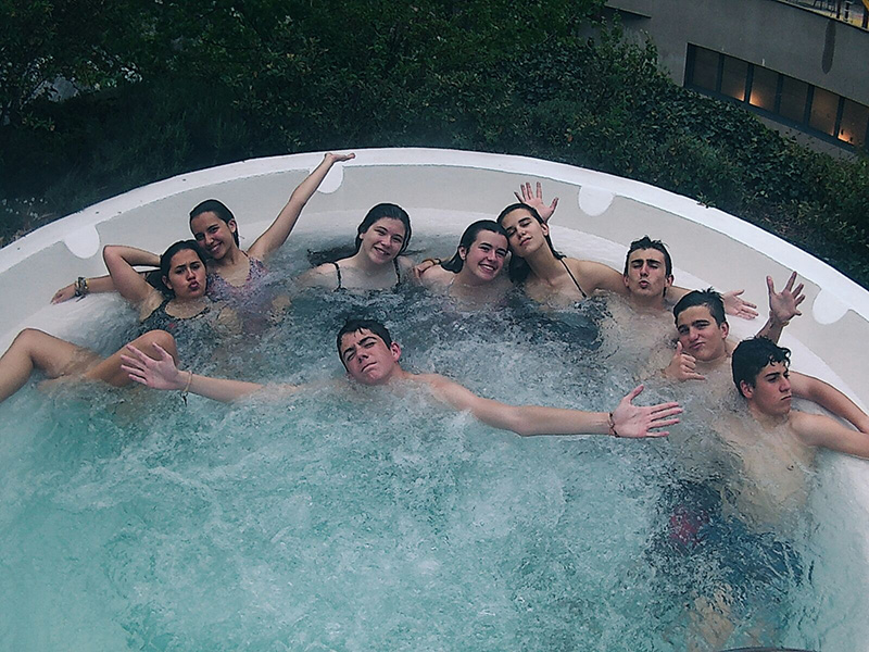 Llegamos a la hora de comer y, después de dejar las maletas, entramos en Caldea, uno de los mejores balnearios de aguas termales de Europa. Por la noche, al terminar de cenar, fuimos a la disco móvil del hotel donde algunos alumnos dieron la nota divertida sorprendiéndonos con disfraces de animales.