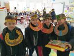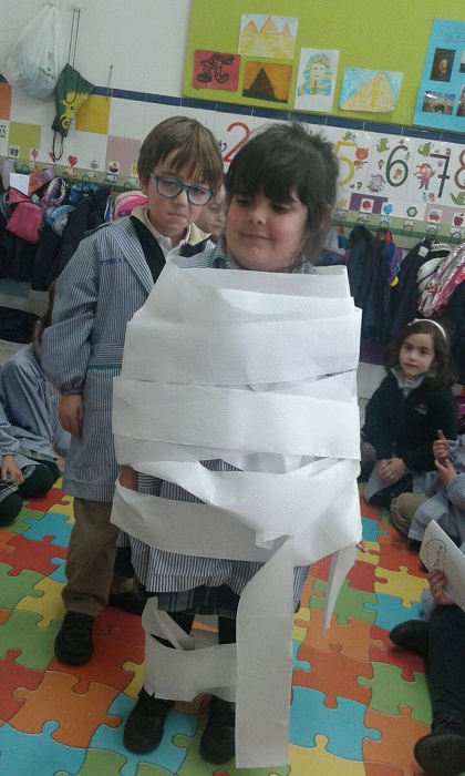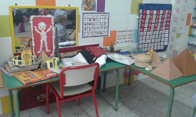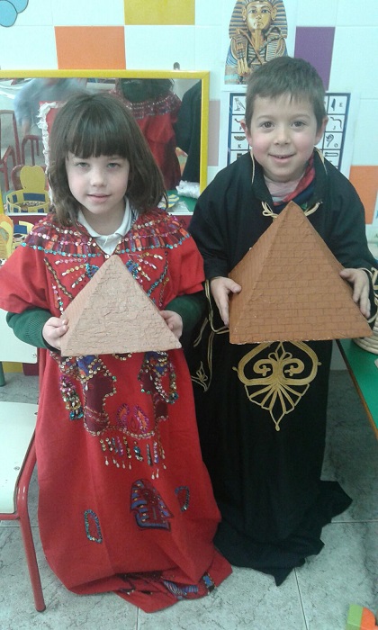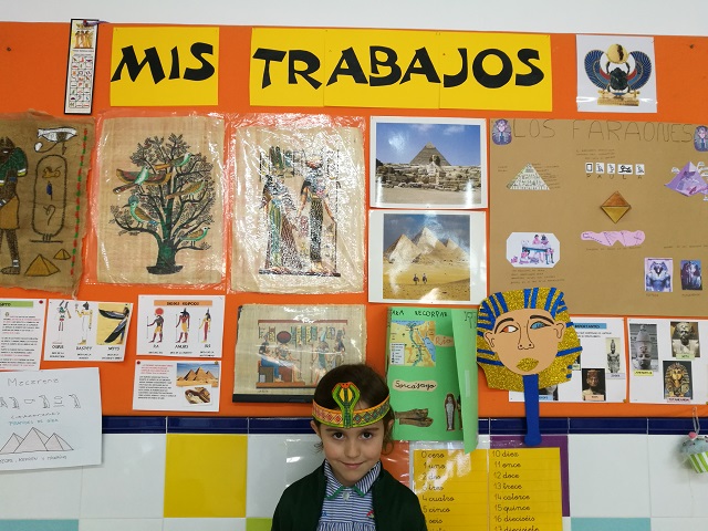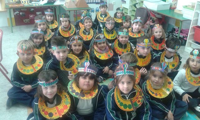 ¿Quiénes eran los egipcios?, ¿a qué se dedicaban? Todas estas preguntas y otras muchas las hemos podido saber trabajando el Proyecto de “Los faraones guardan secretos”. El objetivo del proyecto es que los/las alumnos/as conozcan y comprendan los diferentes aspectos de la civilización egipcia. Las tutoras elegimos esta temática porque consideramos que los egipcios, las pirámides, los faraones, etc., suscitan una gran curiosidad en los/las niños/as ya que tienen mucho interés por su entorno y sobre todo por lo “desconocido” y lo misterioso. Hemos conocido cómo era la escritura en el antiguo Egipto y los/las alumnos/as solucionaron por sí mismos un jeroglífico. Nos hemos metido en la piel de los/las faraones/as y nos hemos asombrado con todos su dioses. Estamos muy satisfechas con el trabajo de nuestros/as alumnos/as y la colaboración de sus familias.